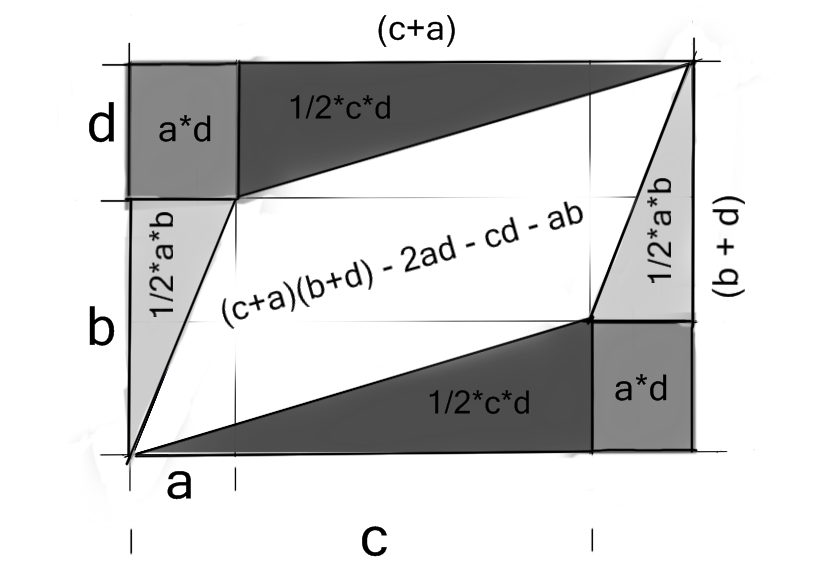 - Compute the oriented area of a polygon by triangulating the polygon and summing the signed areas of the resulting triangles using determinants
