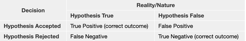 - False positives can also be referred to as type I errors and are represented by ⍺.