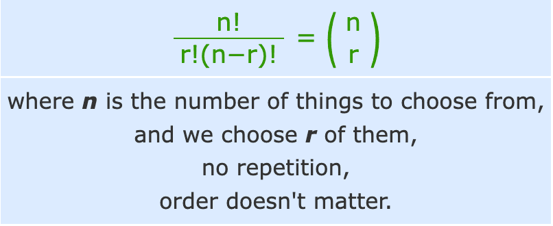 - Non-repeating Combinations- - In non-repeating combinations, the order of items does not matter, but they cannot be repeated.- - Let's take a look at the equation: