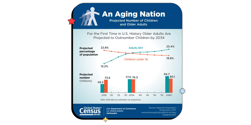 | aging population | A population with an increasing proportion of elderly individuals relative to younger age groups, resulting from declining birth rates and increasing life expectancy. |