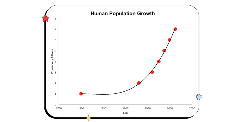 The population of the world did NOT hit 1 billion until the early 1800s. Since that time it multiplies by over seven! The Industrial Revolution (1700s-1800s) equals more food, which equals more people in the developed world. The Medical Revolution/Green Revolution (1900s) equals people living longer and more food, which equals more people in the developing world.