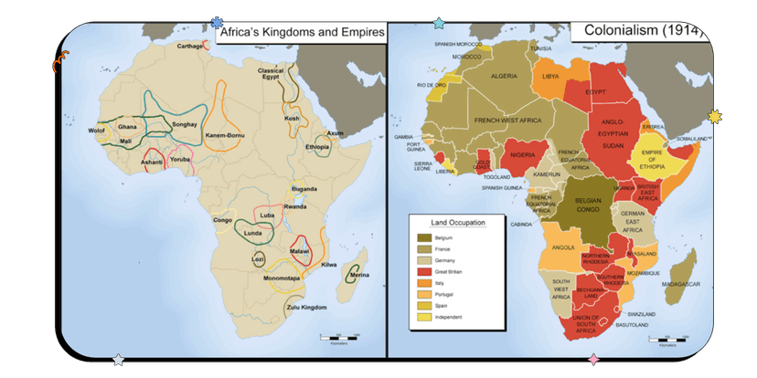 Here’s what Africa looked like before and after the Berlin Conference. Notice how afterward, only Ethiopia and Liberia remained independent. Keep in mind that native Africans lived across the continent before Europeans arrived and they had established centuries of flourishing empires, cultures, and societies. European colonization changed all of that.