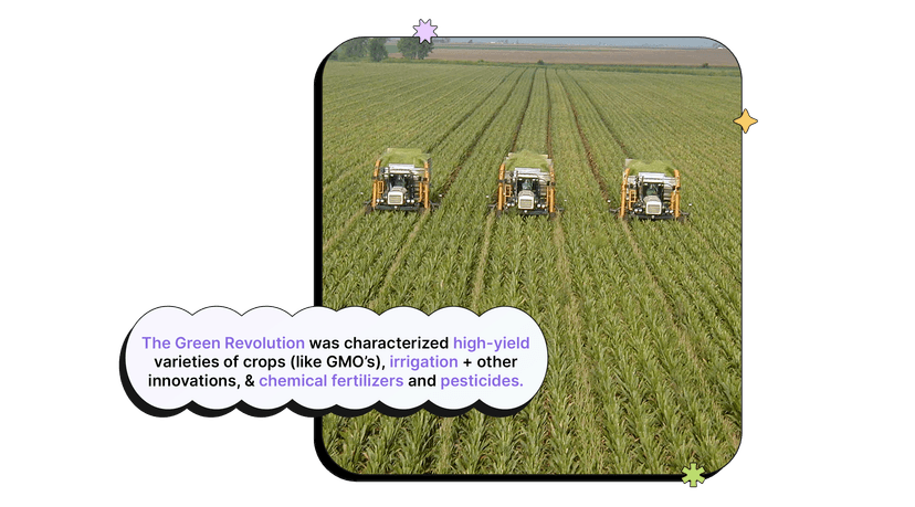 I'm confused about how chemicals and mechanized farming are connected to the Green Revolution - can someone explain?