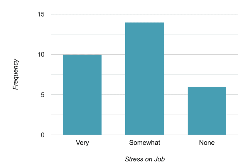 To keep it short, here is the bar graph of stress on the job. We can also use relative frequencies or percentages to construct the bar graph. You can be creative and color each category with a different color. It will be visually attractive and easier to compare them.