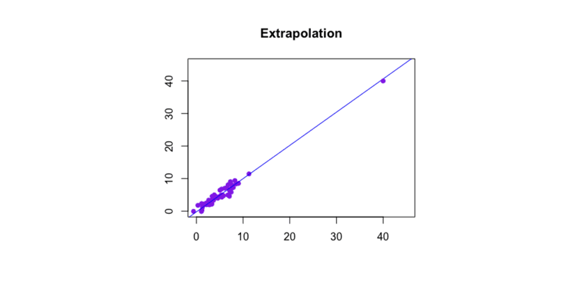 It's important to be cautious when making extrapolations, as they can be prone to errors and can sometimes produce unrealistic or misleading results. It's always a good idea to be aware of the limitations of your model and to be mindful of the risks of extrapolation when making predictions based on your model.