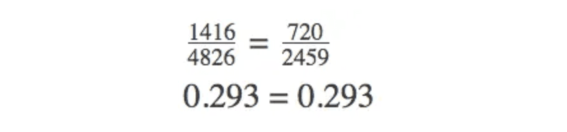 Using the two-way table above, we can determine that the variables "gender" and "opinion" are independent, or not associated, because the marginal relative frequency of being "50-50 chance" is roughly equal to the conditional relative frequency of being "50-50 chance given male".