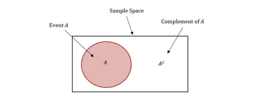 The probability of the complement of an event (also known as the inverse or opposite of an event) is equal to 1 minus the probability of the event occurring. This is because the probability of an event occurring and the probability of the event not occurring must add up to 1, since one of those two events must occur.