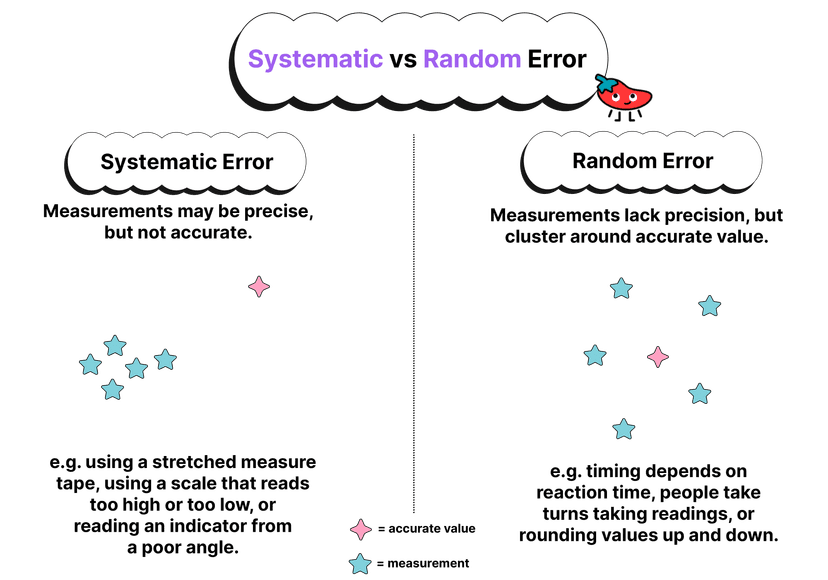 On the other hand, when the variation in the position of points relative to a theoretical line is non-random, it is called systematic error. This type of error is predictable and is due to factors that can be controlled, such as the accuracy of the measuring instrument or the technique used to make the measurement.