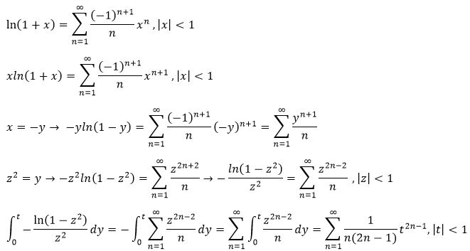 - Telescoping sum: $\left(1 - \frac{2}{2} + \frac{1}{3}\right) + \left(\frac{1}{2} - \frac{2}{3} + \frac{1}{4}\right) + ... = \frac{1}{4}$