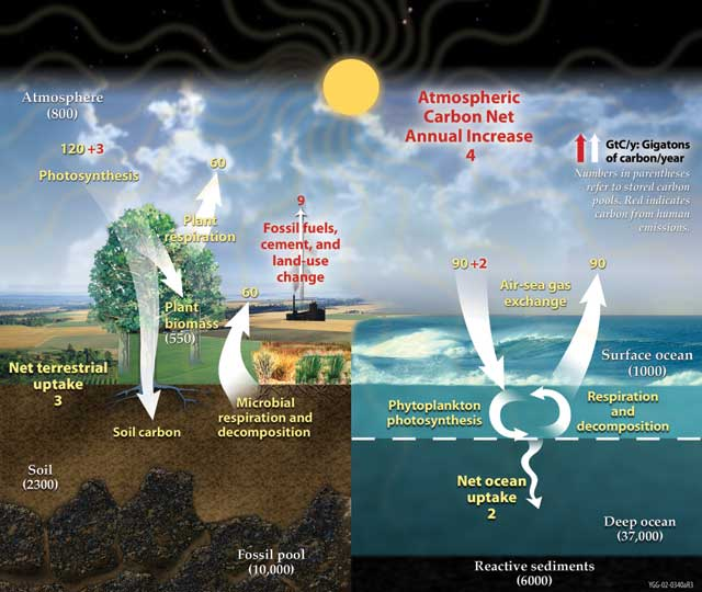 - Examines carbon cycle interactions between atmosphere and biosphere