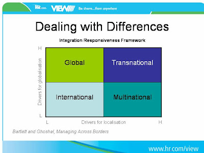 - Integrated global operations with a focus on leveraging resources and capabilities across borders (shared R&D, manufacturing, and marketing)