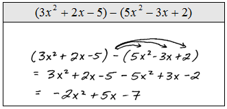 - Example: $(4x^3yz - 2x^2y^2 + 6xyz) - (3x^3yz + x^2y^2 - 2xyz) = x^3yz - 3x^2y^2 + 8xyz$