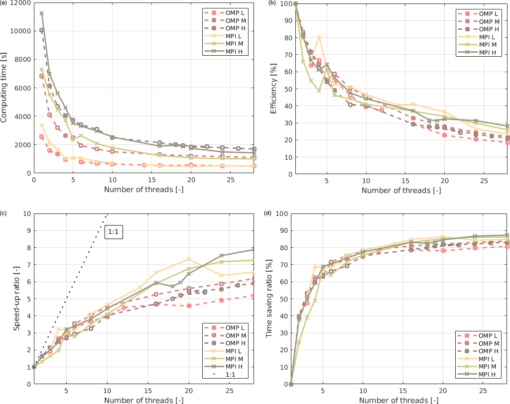 - OpenMP employed for shared-memory parallelism