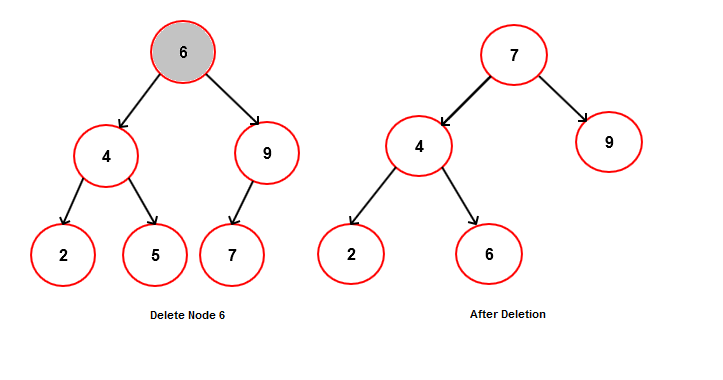 - Node has no children: simply remove the node by setting its parent's pointer to null