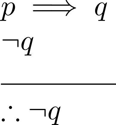 - Symbolically expressed as: [(p โ q) โง ยฌq] โ ยฌp