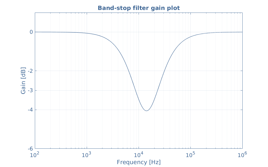 - Vertical axis of magnitude plot uses linear scale for gain in dB