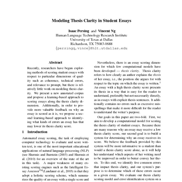 - Argument structure includes topic sentences supporting thesis, evidence presentation, analysis, reinforcing conclusions