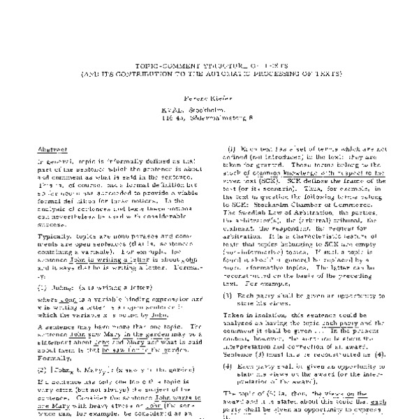 - Topic introduces subject of discourse appearing at sentence beginning guides reader's attention
