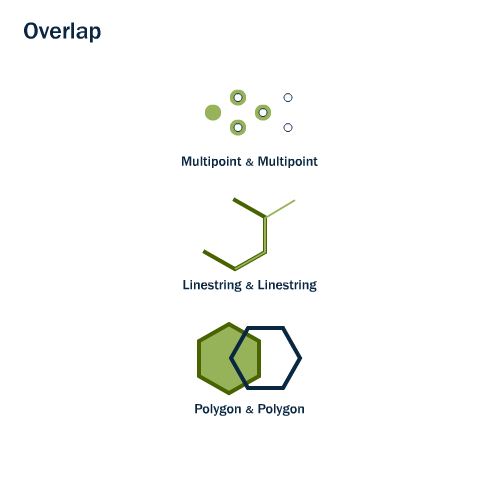 - Determine the spatial relationships between geometries (intersects, contains, overlaps)