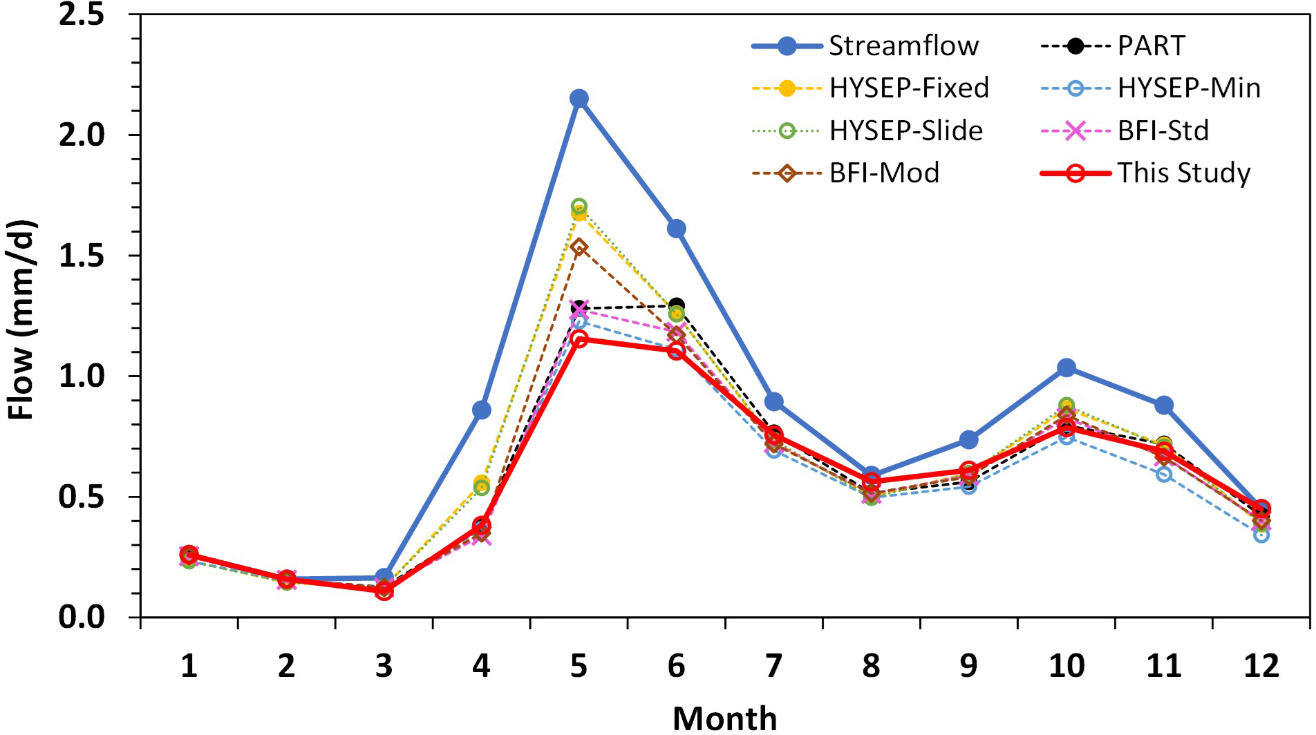 - Different separation methods can yield varying estimates of baseflow and direct runoff contributions