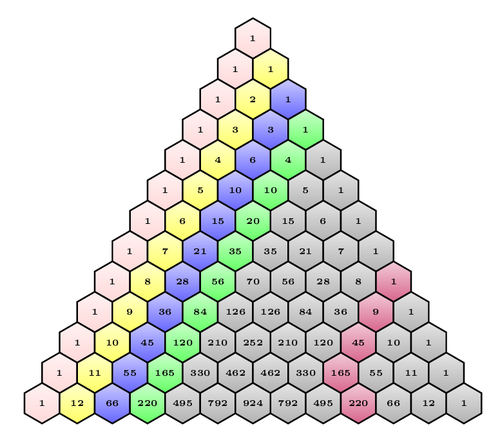- Binomial coefficients are numbers in Pascal's Triangle denoted as $\binom{n}{k}$ or $C(n,k)$
