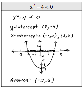 - Shade the region above the x-axis for inequalities with $>$, or below the x-axis for inequalities with $<$