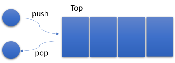 - Fixed-size array stores elements with a top pointer tracking the topmost element