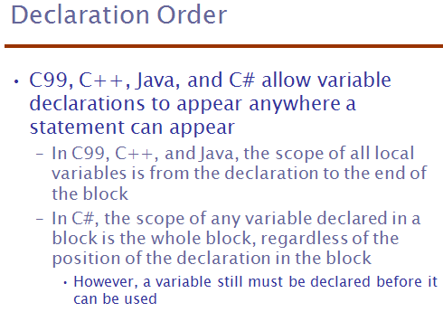 - Scope defines the region of a program where a variable can be accessed or modified