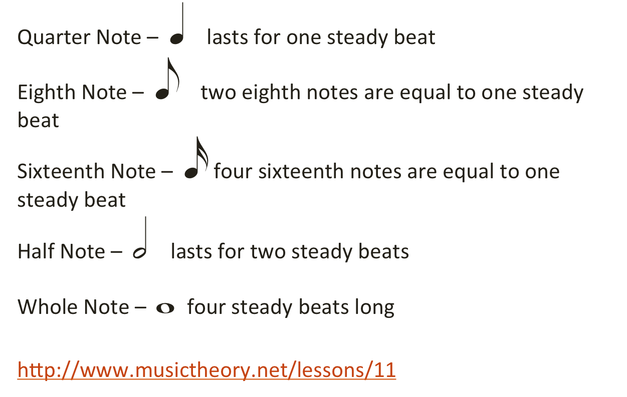 - Familiarity with standard rhythmic notation and the ability to read and write rhythms accurately