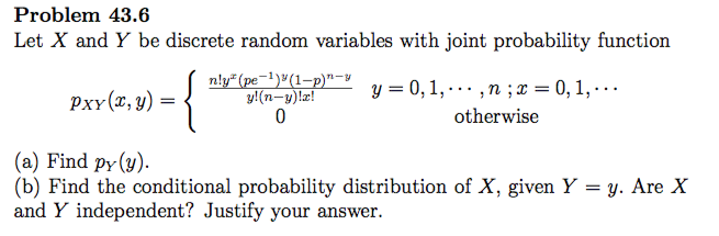 - Example: If the joint PDF of X and Y is $f(x, y) = \frac{1}{2\pi}e^{-\frac{x^2+y^2}{2}}$ and the marginal PDFs are $f_X(x) = \frac{1}{\sqrt{2\pi}}e^{-\frac{x^2}{2}}$ and $f_Y(y) = \frac{1}{\sqrt{2\pi}}e^{-\frac{y^2}{2}}$, then X and Y are independent because $f(x, y) = f_X(x) \times f_Y(y)$