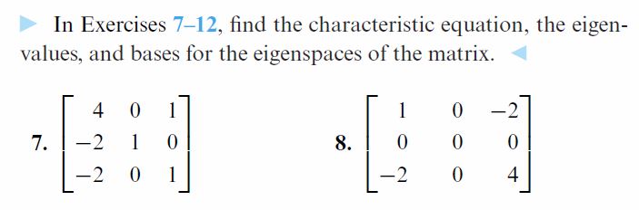 - For each eigenvalue $\lambda$, find the corresponding eigenvectors by solving the equation $(A - \lambda I)v = 0$ for nonzero vectors v.
