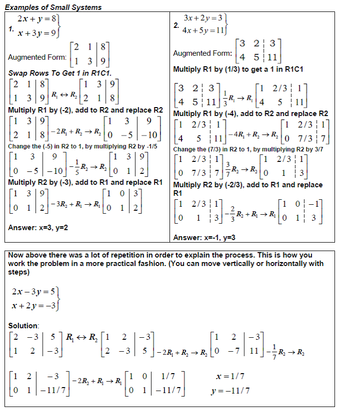 - Process of converting augmented matrix to RREF called Gaussian elimination or Gauss-Jordan elimination