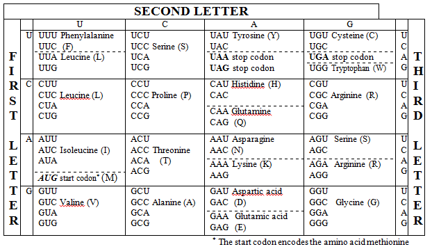 - Set of rules that defines how information encoded in genetic material (DNA or mRNA sequences) is translated into proteins