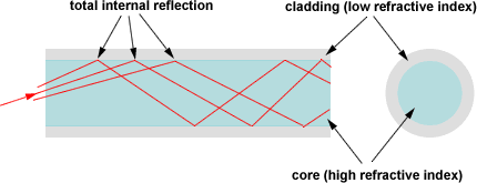 - Utilize the principle of total internal reflection to guide light, where light is confined within the waveguide core (higher refractive index) surrounded by cladding (lower refractive index)