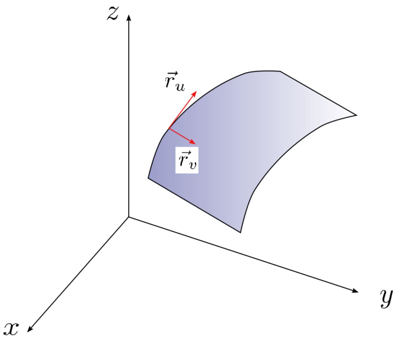 - Compute surface element $dS = |\mathbf{r}_u \times \mathbf{r}_v| du dv$