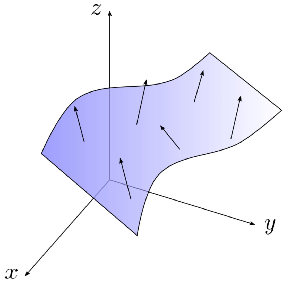 - For surfaces z = f(x,y): $\iint_S \mathbf{F} \cdot \langle -f_x, -f_y, 1 \rangle dA$