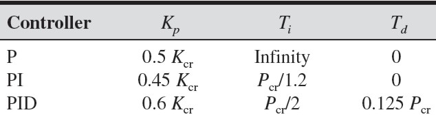 - Ziegler-Nichols method determines initial PID gains based on system's critical gain and period