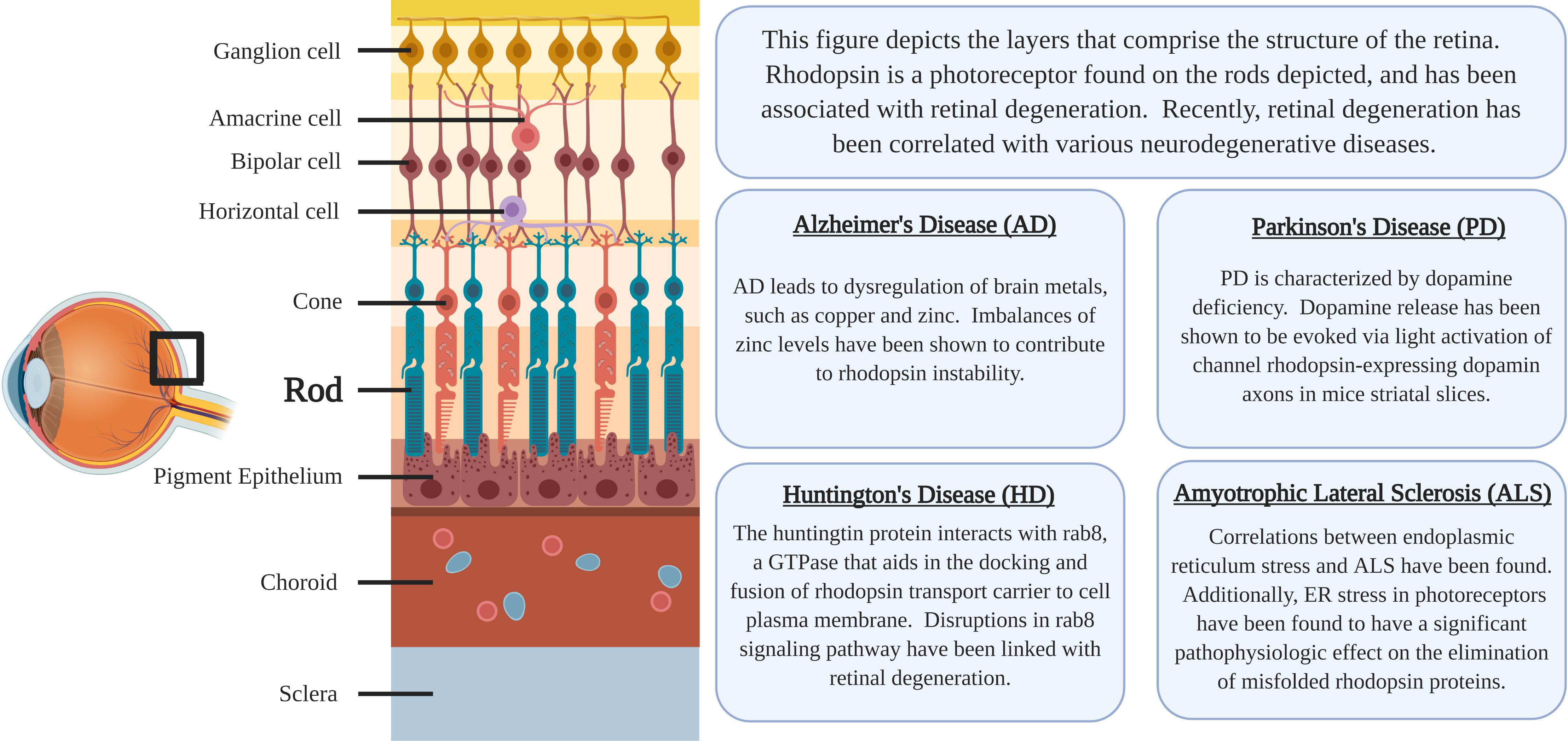 - Opsin provides protein scaffold for retinal binding and signal propagation