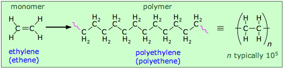 - Prefix "poly" added to the monomer name (polystyrene from styrene monomer)
