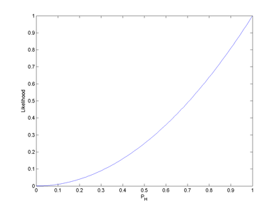 - The likelihood function is given by $L(p|k) = \binom{n}{k} p^k (1-p)^{n-k}$