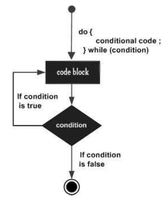 - Do-while loop always executes code block once before checking condition, syntax: do { code block } while (condition);