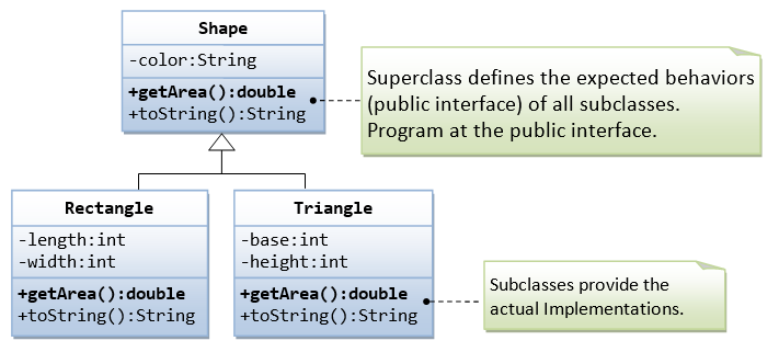 - Superclass serves as the parent class, providing common attributes and methods