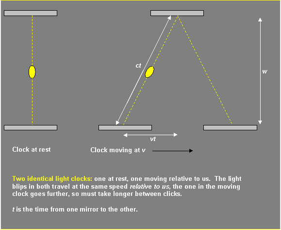 - Synchronized clocks in one reference frame will not be synchronized in another frame moving relative to it (train and platform thought experiment)