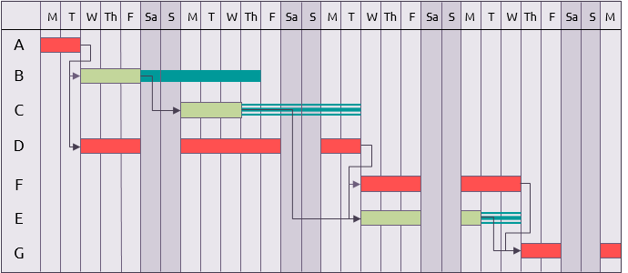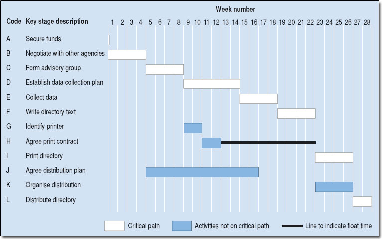 - Critical path method (CPM) identifies crucial tasks