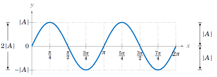- Amplitude measures max vertical distance from midline to peak/trough, half the distance between max and min values (waves in ocean)